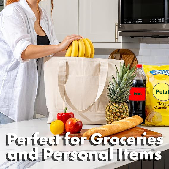 Large-size grocery shopping bags are designed to make everyday shopping easier, more organized, and eco-friendly. Made from strong and durable materials such as canvas, cotton, jute, or heavy non-woven fabric, these bags are built to carry heavier loads without tearing or losing shape. Their spacious design easily fits vegetables, fruits, grains, milk packets, bottles, and packaged items in one go, reducing the need for multiple bags. Wide bases and reinforced stitching provide better weight distribution, while sturdy handles offer a comfortable grip for carrying longer distances. Reusable and sustainable, large grocery shopping bags help reduce plastic waste and are a practical choice for regular market visits, supermarkets, and bulk shopping. With simple, functional designs and ample space, they are ideal for households looking for a reliable, long-lasting, and environmentally responsible shopping solution.